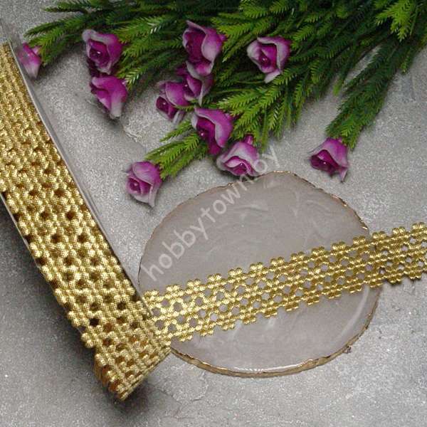 Лента декоративная “сеточка в цветочек”, 22 мм, (цв.золото) 1м