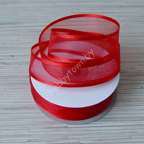 Лента органза с атласным краем 25 мм (цв.красный 26) 1 метр