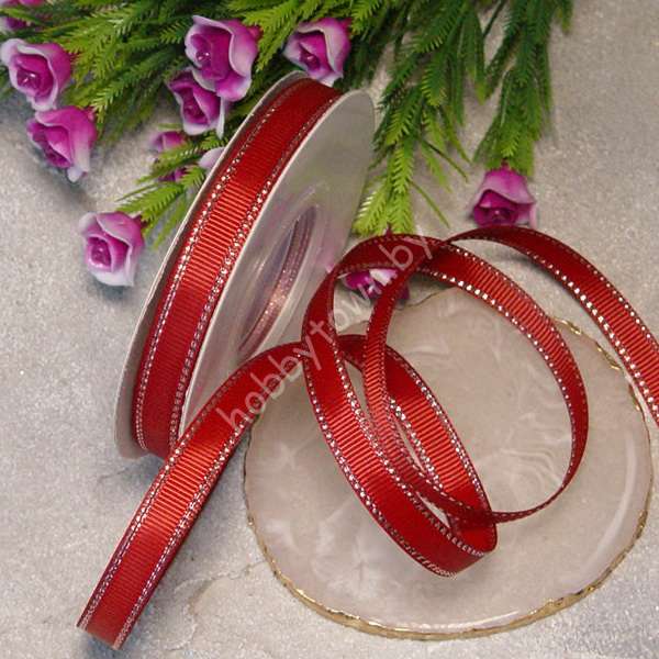 Лента репсовая 10 мм (цв. бордовый с люрексом серебро 37 ) 1 м