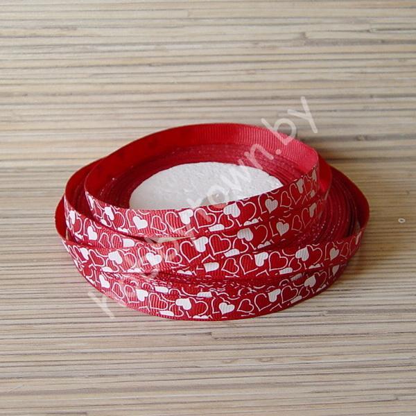 Лента репсовая 10 мм Сердца (цв. бордовый с белым ) 1м