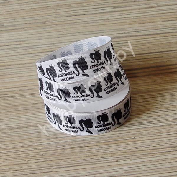 Лента репсовая 2,5см Королева школы (цв. белый) 1м
