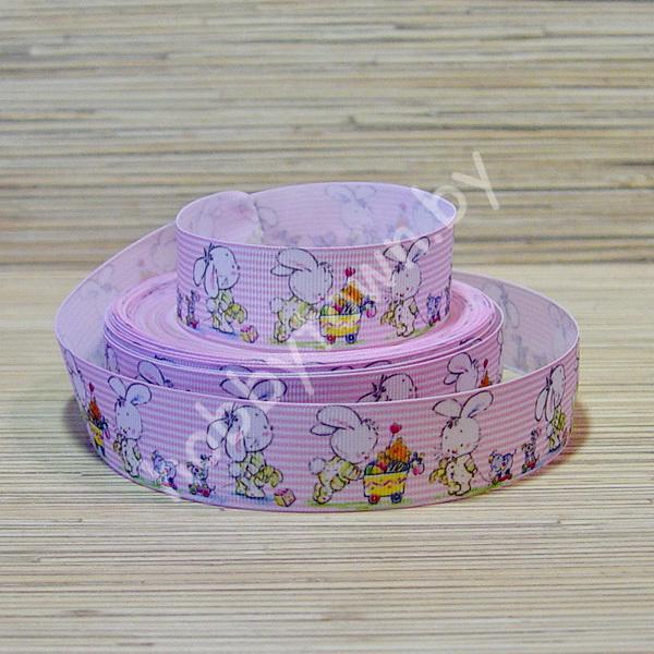 Лента репсовая 2,5см “Зайки” отрез 1м
