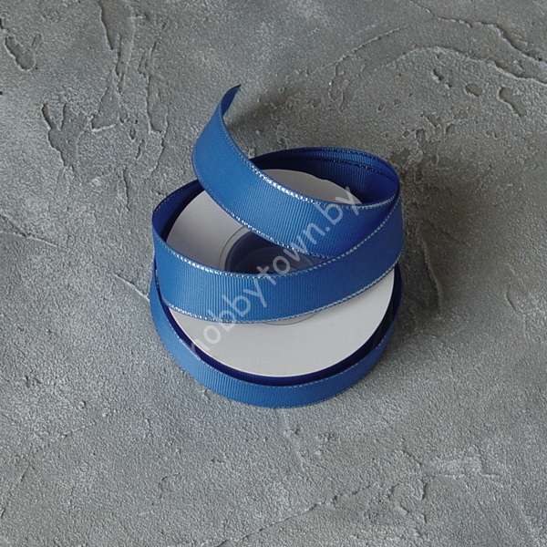 Лента репсовая 25 мм (цв. синий с люрексом серебро) 1м
