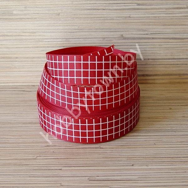 Лента репсовая 25 мм “Клетка” (цв. бордовый с белым) 1м