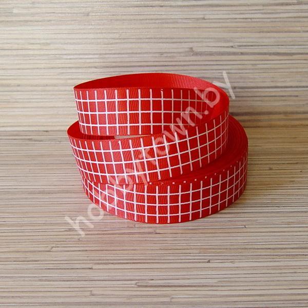 Лента репсовая 25 мм “Клетка” (цв. красный с белым) 1м