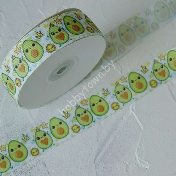 Лента репсовая 25 мм с рисунком Авокадо в короне, 1 м