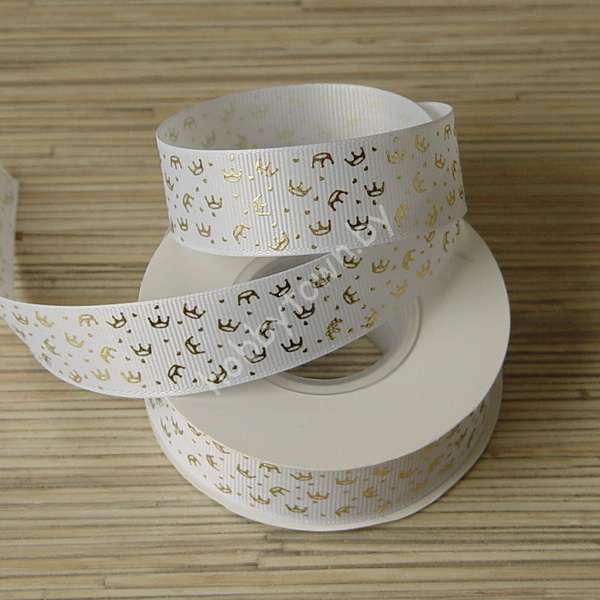 Лента репсовая 25 мм с рисунком “Корона” (цв. белый/золото №01) 1 м