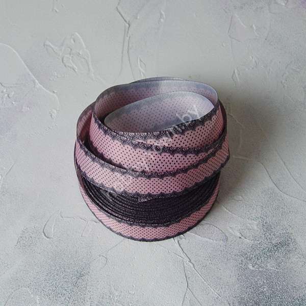 Лента репсовая 25 мм с рисунком Кружево/горошек мелкий ( цв. персиковый) 1м