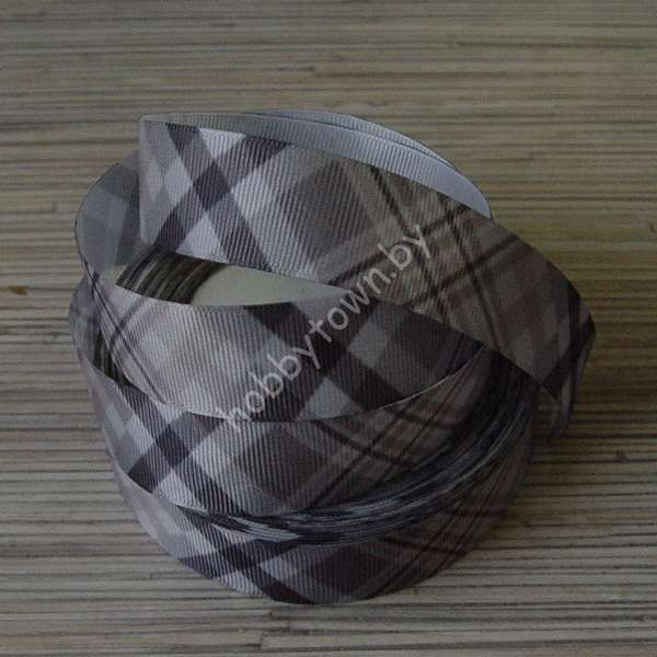 Лента репсовая 25 мм с рисунком Ромбы (цв. чёрный/серый) 1 м