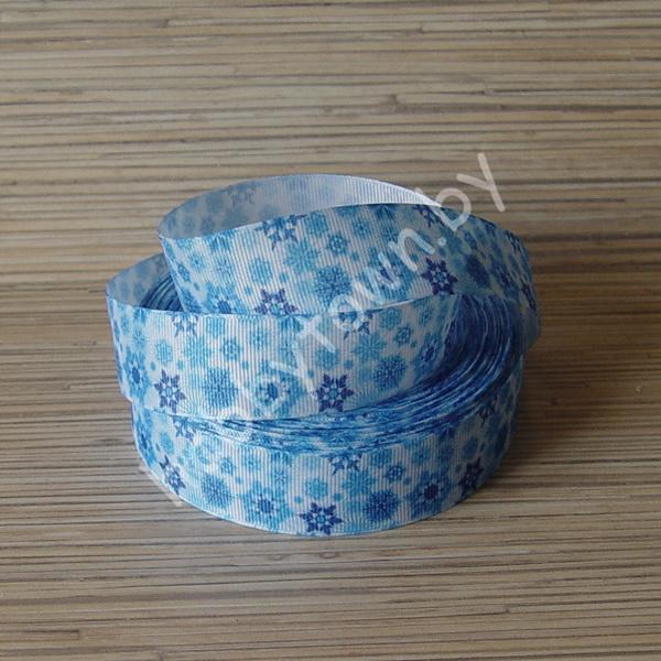 Лента репсовая 25 мм Снежинки (цв. голубой) 1м