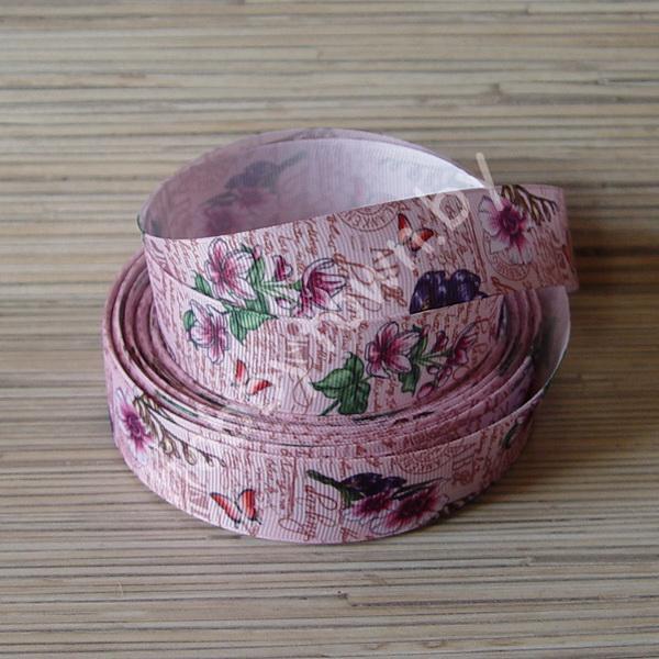 Лента репсовая 25 мм Цветы (цв. розовый) 1м