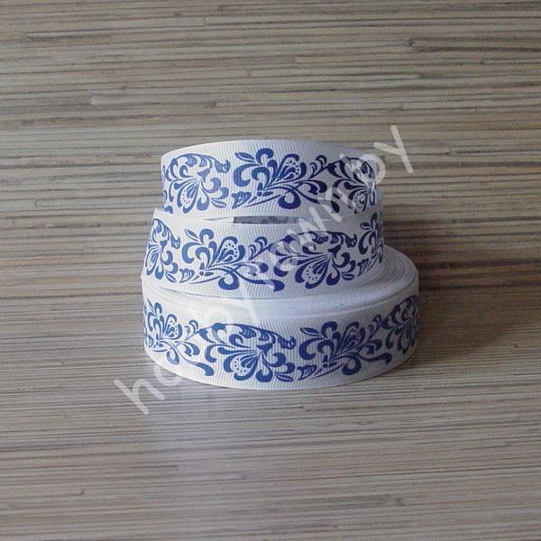 Лента репсовая 25 мм “Узор” (цв. белый/синий) 1м