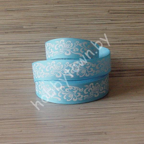Лента репсовая 25 мм “Узор” (цв. голубой/белый) 1м