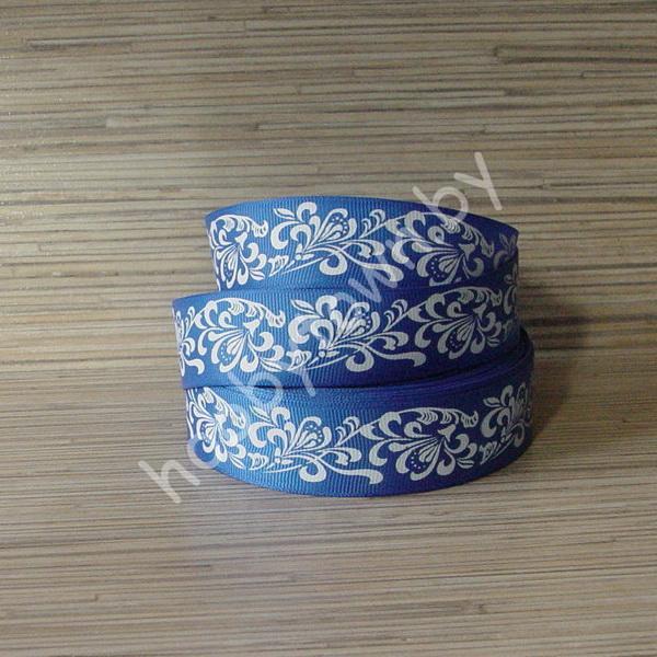 Лента репсовая 25 мм “Узор” (цв. синий/белый) 1м