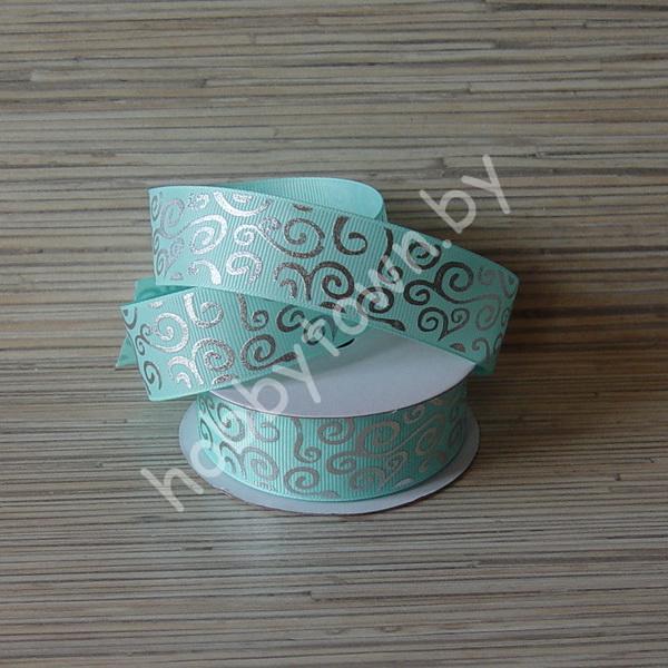 Лента репсовая 25 мм Вензеля (цв. аквамарин с серебром) 1м