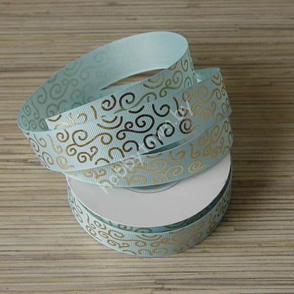 Лента репсовая 25 мм Завитки (цв. голубой/золото 11) 1м