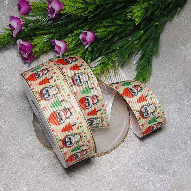 Лента репсовая 2,5 см, Пингвинчики, 1 м