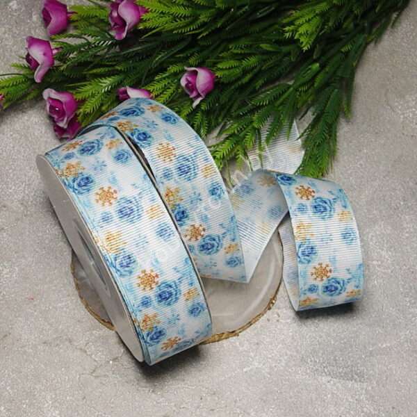 Лента репсовая 2,5 см, Снежинки и розочки, 1 м