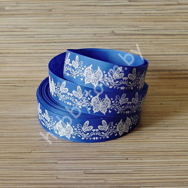 Лента репсовая 25мм «Бабочки» (цв. синий-белый) 1м