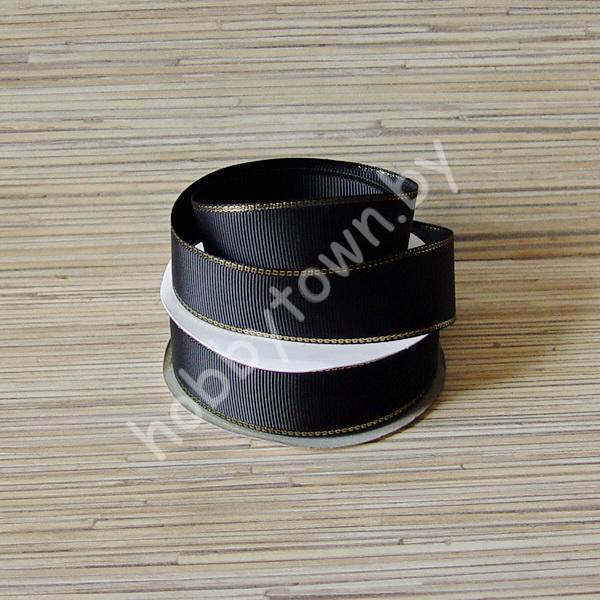 Лента репсовая 25мм (цв. чёрный с люрексом золото) 1м