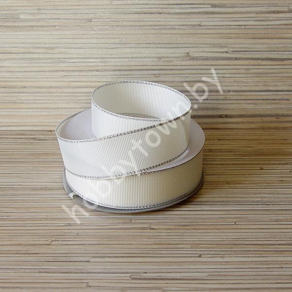 Лента репсовая 25мм (цв. молочный с люрексом серебро) 1м