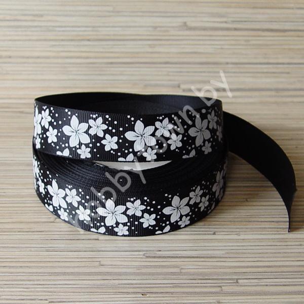 Лента репсовая 25мм “Цветы” (цв. чёрно-белый) 1м