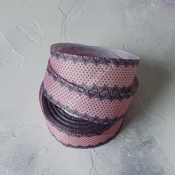 Лента репсовая 40 мм с рисунком Кружево/мелкий горошек (цв. персиковый) 1 м