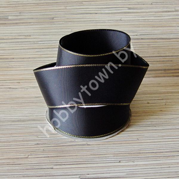 Лента репсовая 40мм (цв. чёрный с люрексом золото) 1м