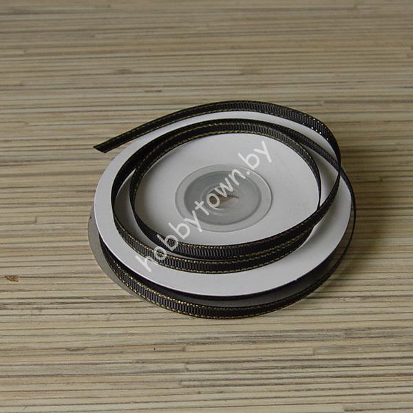 Лента репсовая 6 мм (цв. чёрный с люрексом золото) 1м