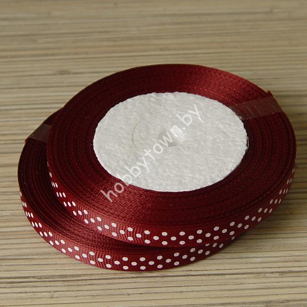 Лента репсовая горох 1 см (цв. бордовый) 1м