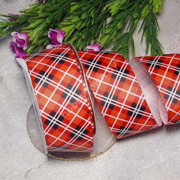 Лента репсовая с рисунком Клетка 40 мм (цв. красный) 1м
