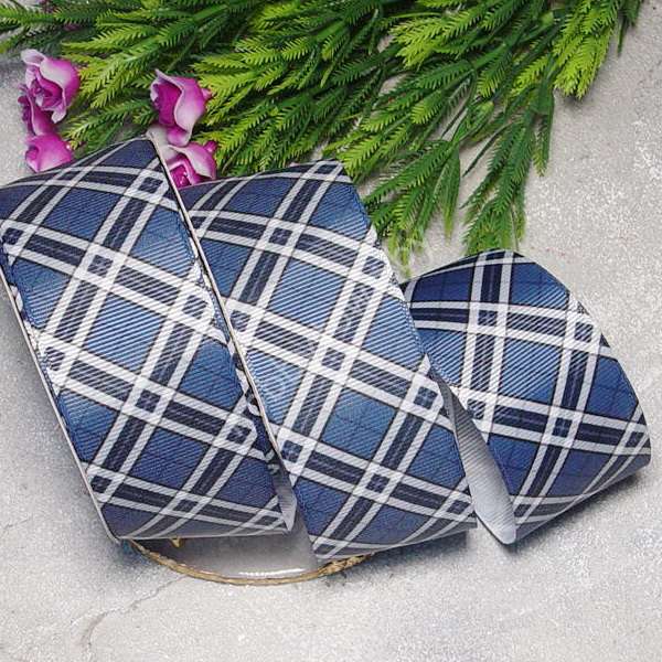 Лента репсовая с рисунком Клетка 40 мм (цв. тёмно-синий) 1м