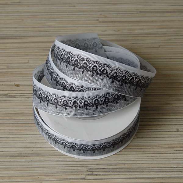 Лента репсовая с рисунком Кружево-5, 25 мм 1м