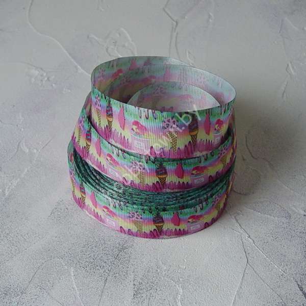 Лента репсовая с рисунком Мороженки, 25 мм (цв. разноцв.) 1 м
