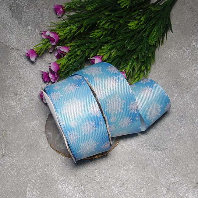 Лента репсовая с рисунком Снежинки 40 мм (цв. голубой) 1 м