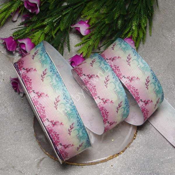 Лента репсовая с рисунком Узор, 25 мм (цв. градиент) 1 м