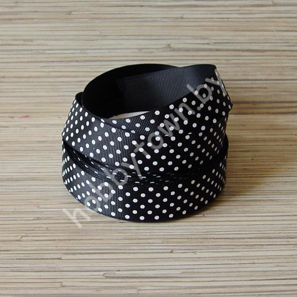 Лента репсовая в горох 2,5 см (цв. чёрный) 1м