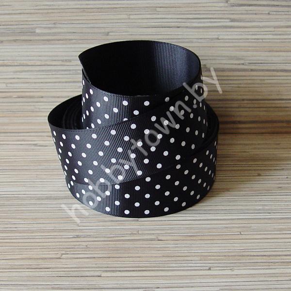 Лента репсовая в средний горох 4 см, (цв. чёрный) 1м