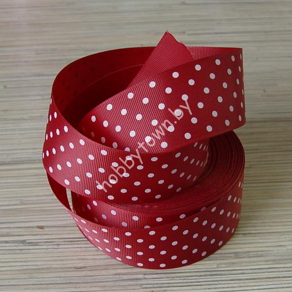 Лента репсовая в средний горох 4 см, (цв. тёмно-красный) 1м