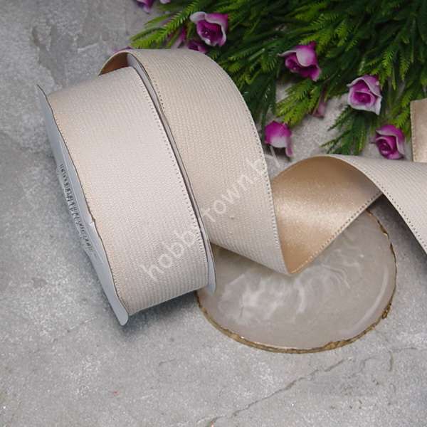 Лента вельвет/атлас 38 мм (цв. св-бежевый 27) 1 метр