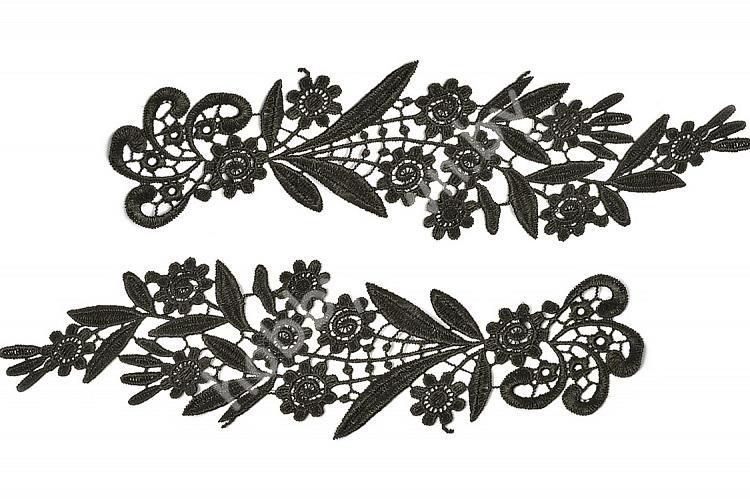 / Лейсы (аппликации пришивные) 27х8см (цв.чёрный) 1шт.