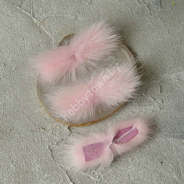 Меховые полоски натуральные 2,5 x 7 см (цв. св-розовый 6) 1 шт.