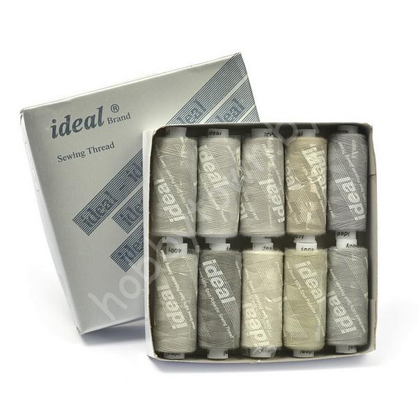 Набор бытовых ниток IDEAL 40/2 366м 100% п/э, (цв.серые оттенки ) 10шт