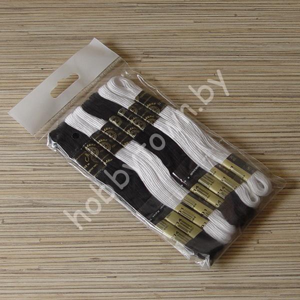 Нитки мулине «Рояль» 10м набор 8 мотков (цв.чёрный-белый)