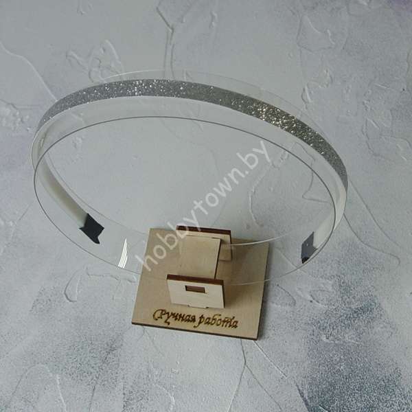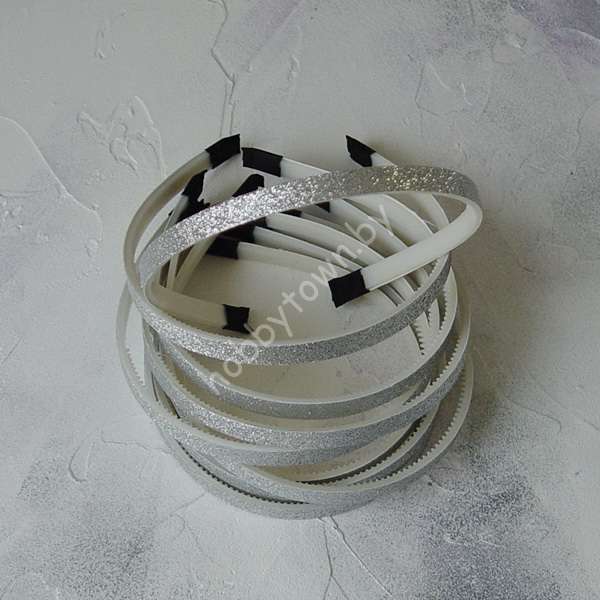 Ободок для волос 1 см, пластик-ткань с блёстками (цв. серебро) 1 шт.