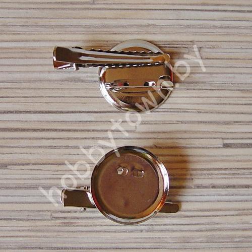Зажим 40 мм с гнездом 25 мм на булавке (цв.серебро) 1шт.