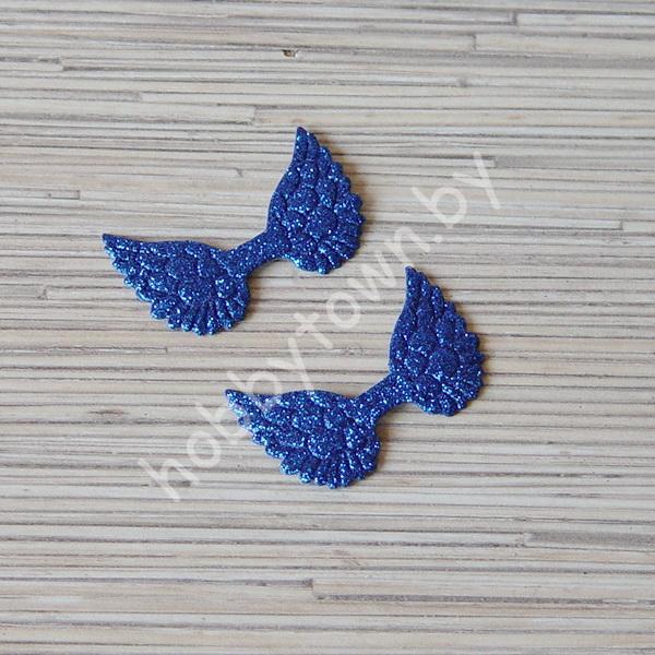 Патч глиттерный Крылья большие 45×30 мм (цв. синий) 1шт.