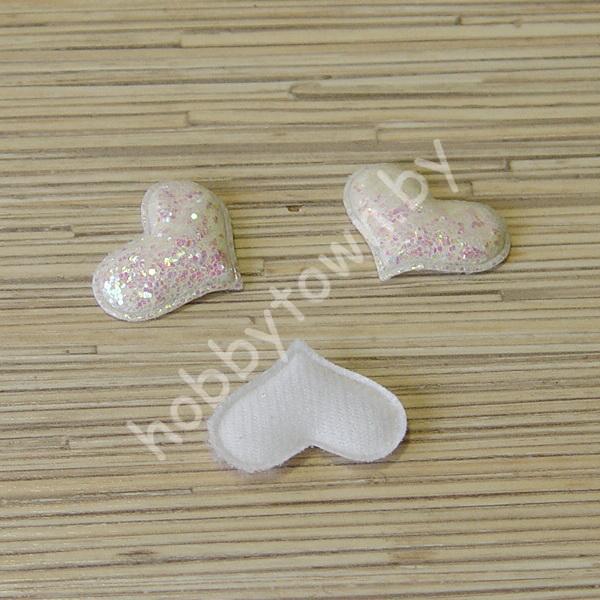 Патч с глиттером перламутр Сердце 30х33мм (цв.белый) 1шт.