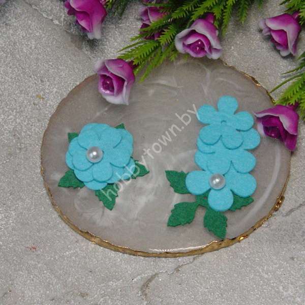 Патч сборный из корейского фетра Цветок 25 мм (цв.бирюзовый) 1 шт.