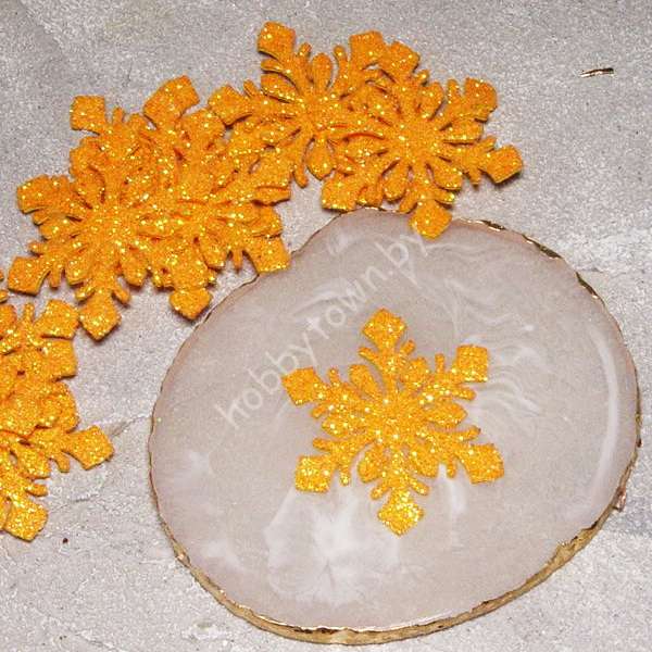 Патч-вырубка из глиттерного фоамирана 2 мм “Снежинка 2” 45 мм (цв. оранжевый) 1 шт.